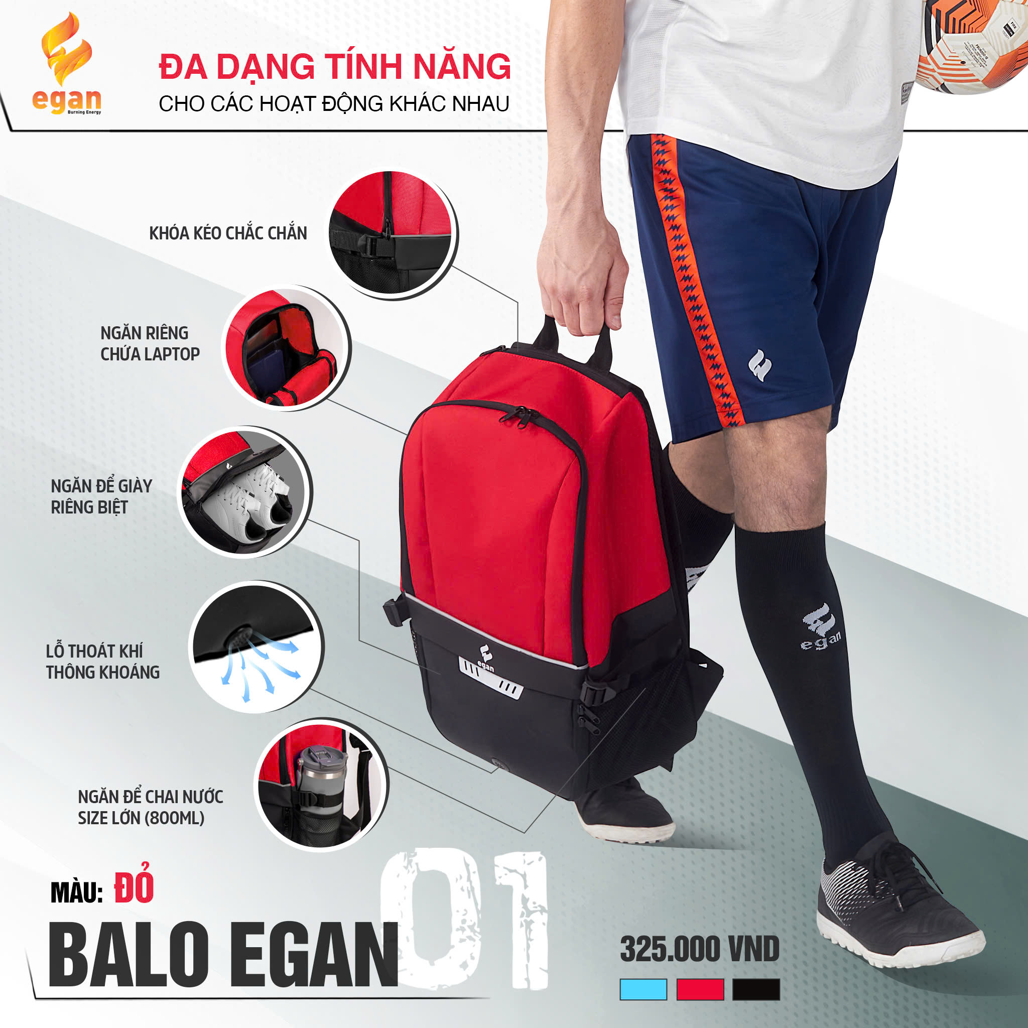 Balo Egan 01 là mẫu balo thể thao – tiện dụng được thiết kế dành cho nhu cầu di chuyển hằng ngày, tập luyện và đi học. Với kiểu dáng gọn gàng, hiện đại cùng chất liệu bền bỉ, Balo Egan 01 mang đến sự kết hợp hài hòa giữa thời trang, tiện ích và độ bền cao.